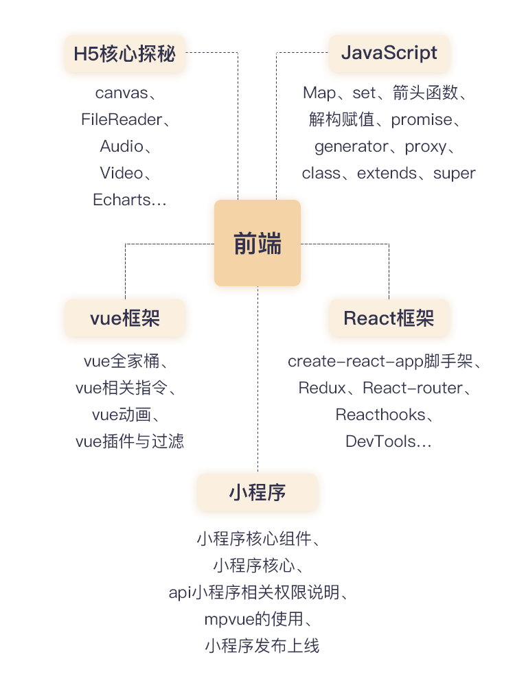 包含超全面:从HTML、CSS到vue、react一个都不缺,跨平台覆盖,PC、移动端、小程序、服务端等等。