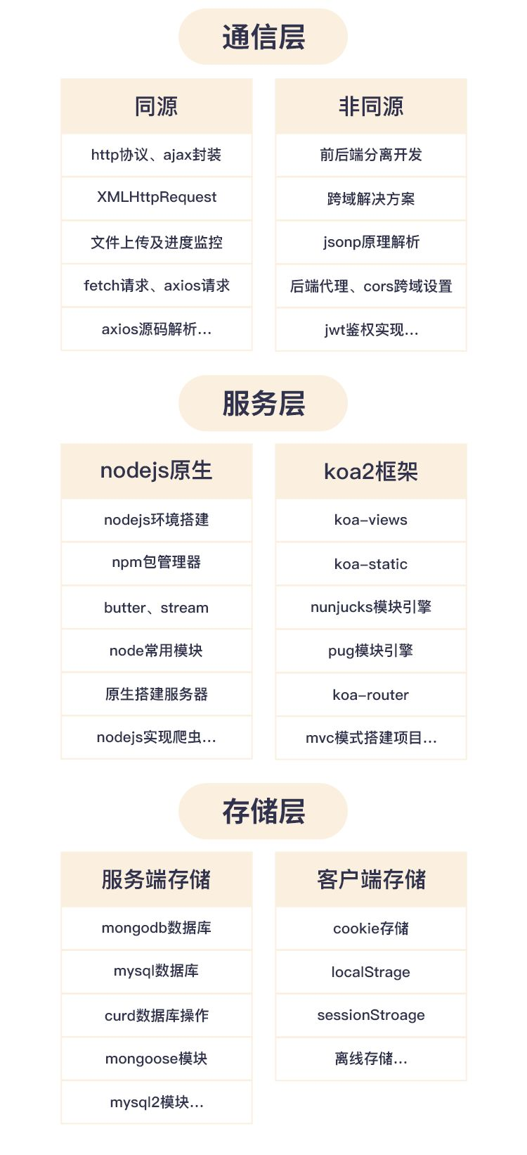 另外,我们还从前端、通信层、服务层、存储层的四个层面阐述开发过程中 前端,数据通信,后端,数据库 彼此之间的关系,并进行分类归纳,条理更加清晰易懂。