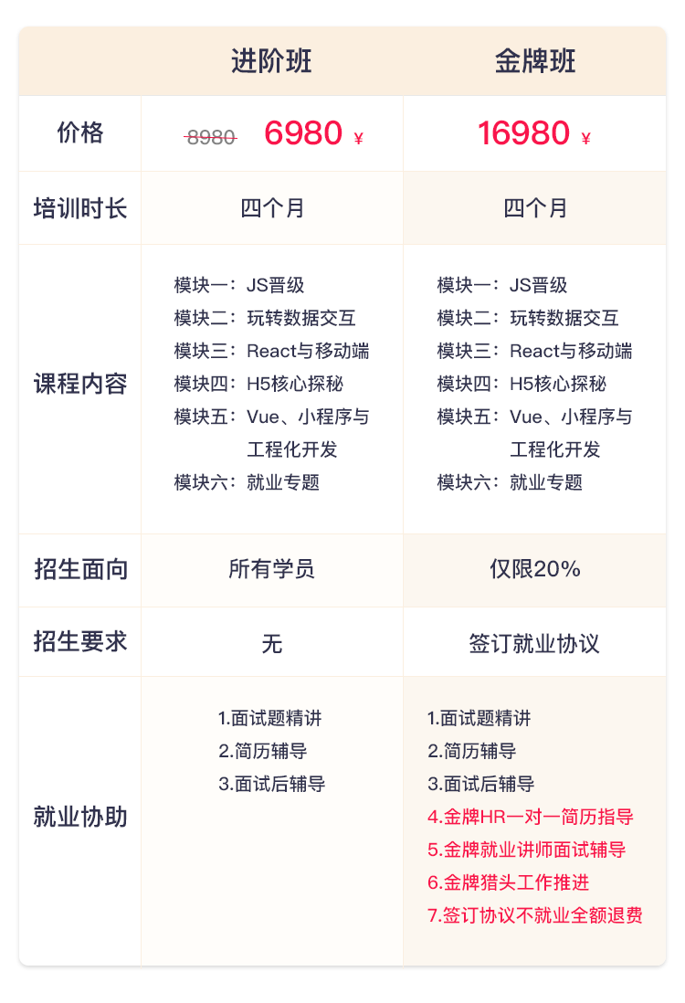 > 金牌班费用:16980 元( 仅限 20% 的学员)