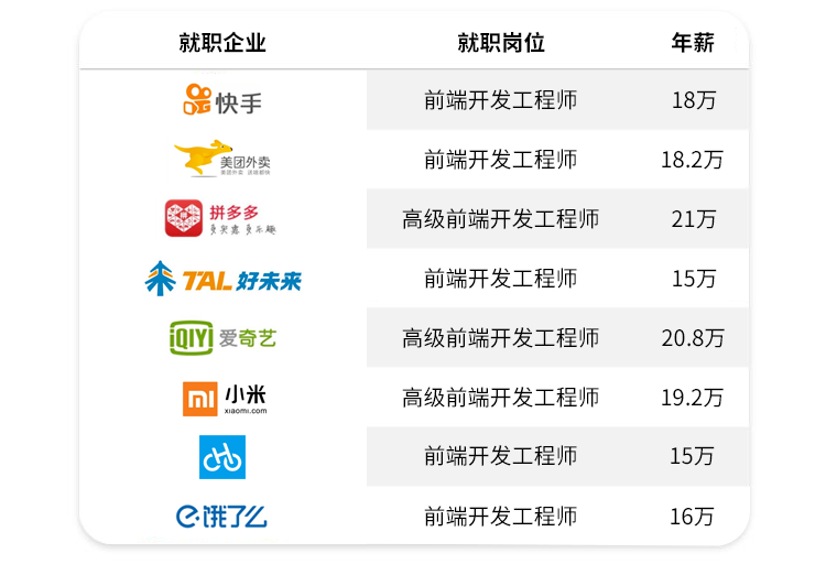 让人稍微放心的是,前端前景不错,发展已不再局限于前端,还涉及到后端、人工智能领域及物联网等多个层面。对应薪资也是一路水涨船高,与后端开发的薪资差距明显。