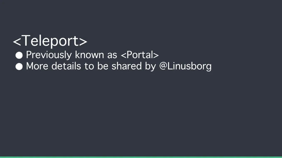 但因为Chrome有个提案,会增加一个名为Portal的原生element,为避免命名冲突,改为Teleport
