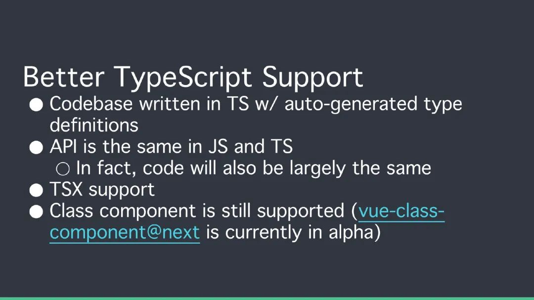 TSXclass组件还会继续支持,但是需要引入vue-class-component@next,该模块目前还处在 alpha 阶段。