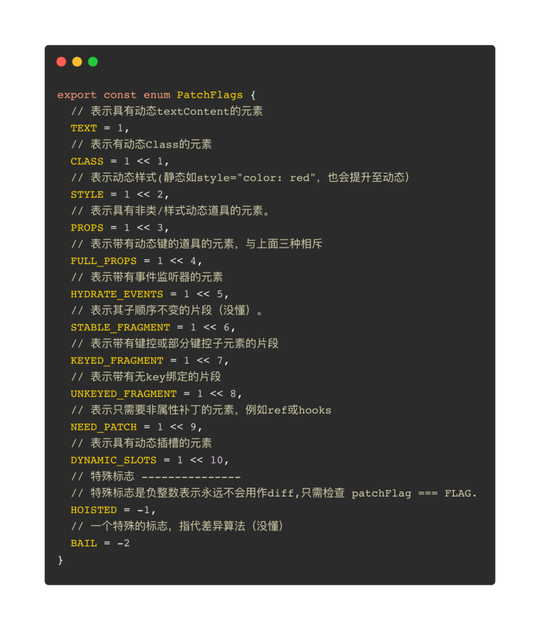 感兴趣的可以看源码:packages/shared/src/patchFlags.ts