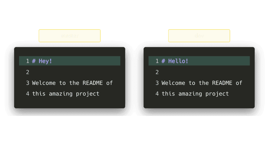 这种情况下,Git 会要求你帮助决定要保留哪边的改动。假设在两个分支上,我们都编辑了README.md文件的第一行: