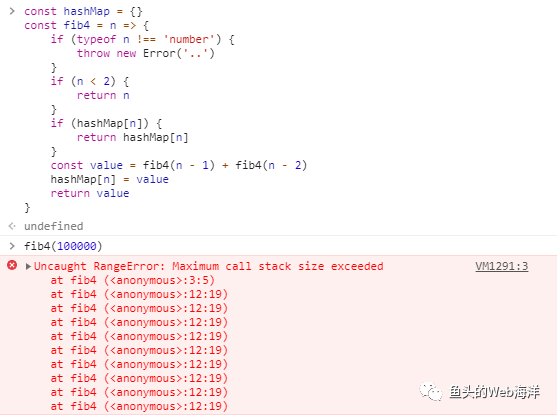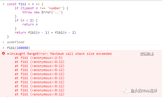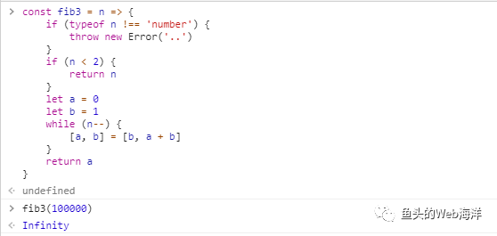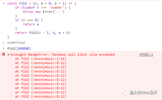 const fib2 = (n, a = 0, b = 1) => { if (typeof n !== "number") { throw new Error(".."); } if (n === 0) { return a; } return fib2(n - 1, b, a + b); };不过很遗憾,在 Chrome 83.0.4103.61 里还是会爆。