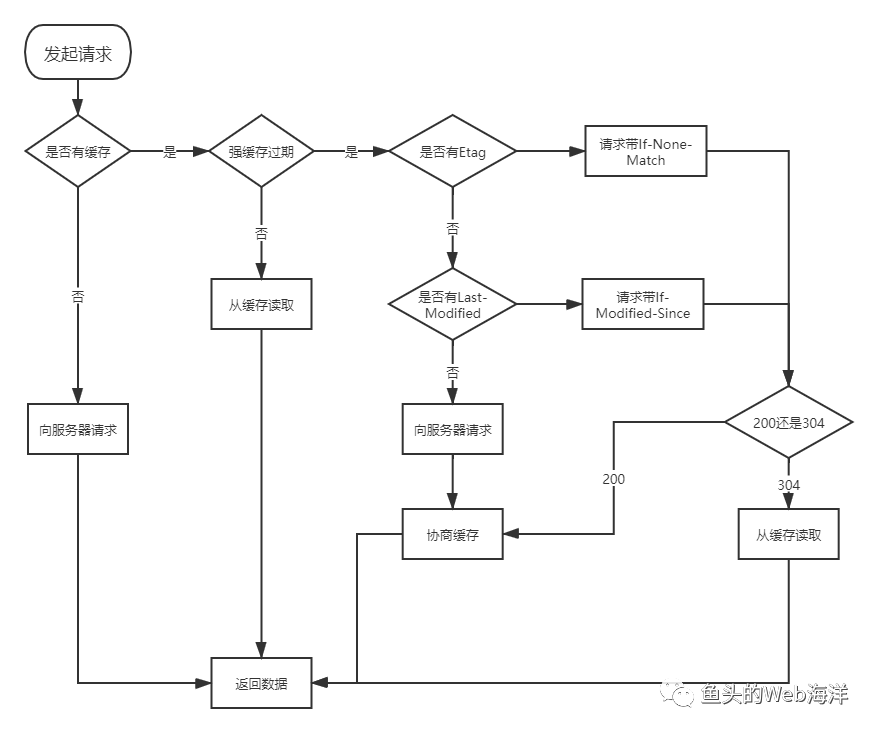 Last-Modified把 Web 应用最后修改时间告诉客户端,客户端下次请求之时会把If-Modified-Since的值发生给服务器,服务器由此判断是否需要重新发送资源,如果不需要则返回 304,如果有则返回 200。这对组合的缺点是只能精确到秒,而且是根据本地打开时间来记录的,所以会不准确。Etag 与 If-None-Match 配对。它们没有使用时间作为判断标准,而是使用了一组特征串。
