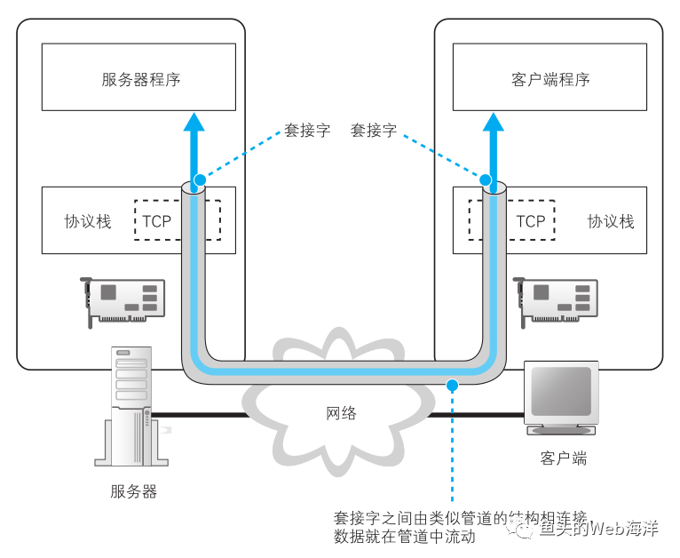 协议栈通过 TCP 协议收发数据的操作。