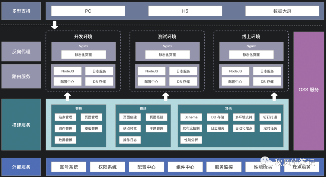 | 政采云-鲁班[2](未开源) | 鲁班是一个基于业务组件快速生成页面的搭建系统(站点、页面、组件、数据、权限) ,JSON Schema将业务转成数据→将数据转为定义→将定义规范成结构![]() | 提升用户体验:页面采用静态化方案,渲染及访问速度更快;提高稳定性:采用 Nginx 直接转发的方案,页面路由可用性保障及响应性能更具优势,同时支持更健壮的容灾方案,支持快速发版、回滚。;快速响应业务需求:通过组件化复用,能够快速响应业务需求、提高研发人效;更好的业务赋能:使得产品、运营等同学也能参与页面的搭建,提升业务迭代效率和数据可用性。;更好的系统化能力:基于搭建系统,便于横向和性能检测系统、稳定性保障系统、运维部署系统、线上监控系统进行打通,形成系统级合力、复利。 | ![]() ![]() |