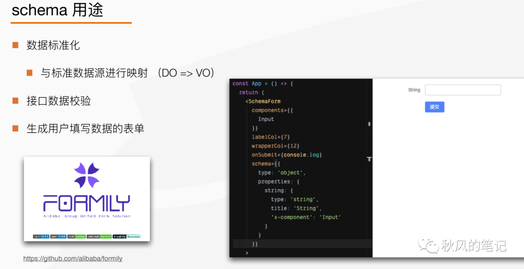 DSL方式解析拖拽或者配置好的伪代码生成所需前端页面,大部分使用的是JSON Schema形式;