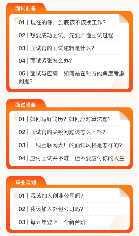 这些问题是不是让你恍然大悟,又心生惶恐。面试不等同于考试,搞定考核范围内的所有内容,考试也就八九不离十了。但面试是人与人的沟通,你也可以看成是一次博弈。面试流程是怎样的?面试官在想什么?更重要的是,面试更应该站在职业规划的层面去看待,去长期规划。