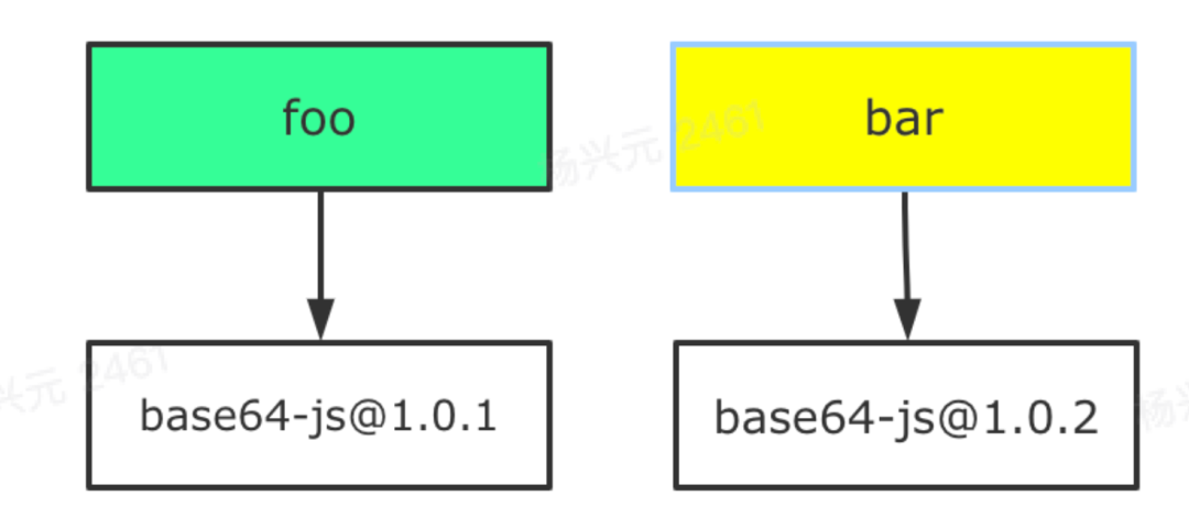 不确定性是什么意思?这里来详细解释一下。假如现在项目依赖两个包 foo 和 bar,这两个包的依赖又是这样的: