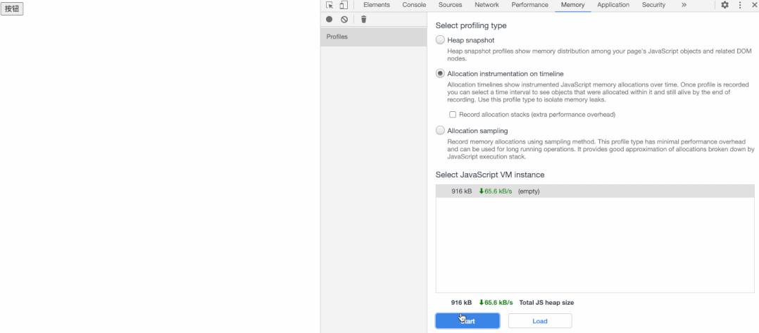 在了解一些常见的内存泄漏的场景之前,先简单介绍一下如何使用Chrome的开发者工具来查看js内存情况