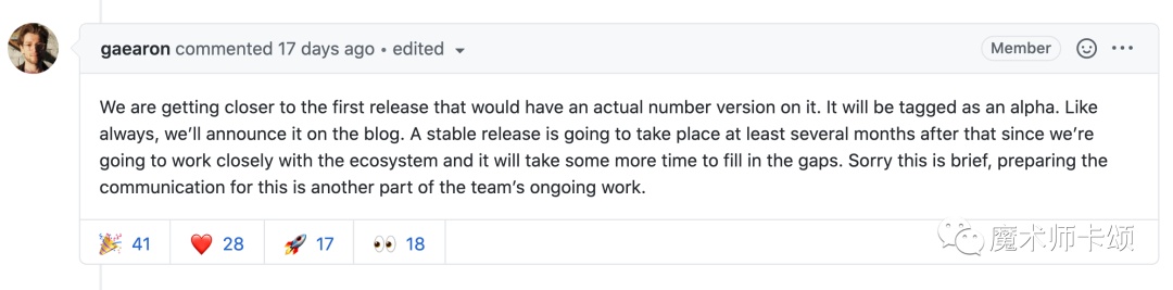 React17是一个过渡版本,用以稳定CM。一旦CM稳定,那v18的进度会大大加快。
