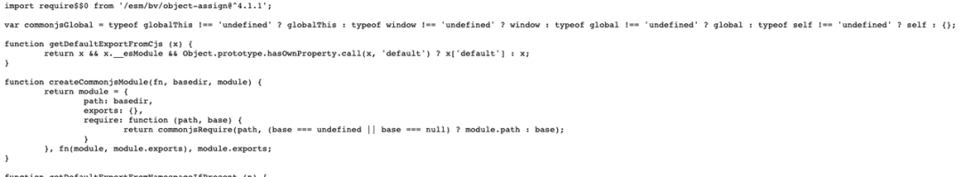 以 React 为例, 直接从云端下载的 ESM 产物内容截图如下: