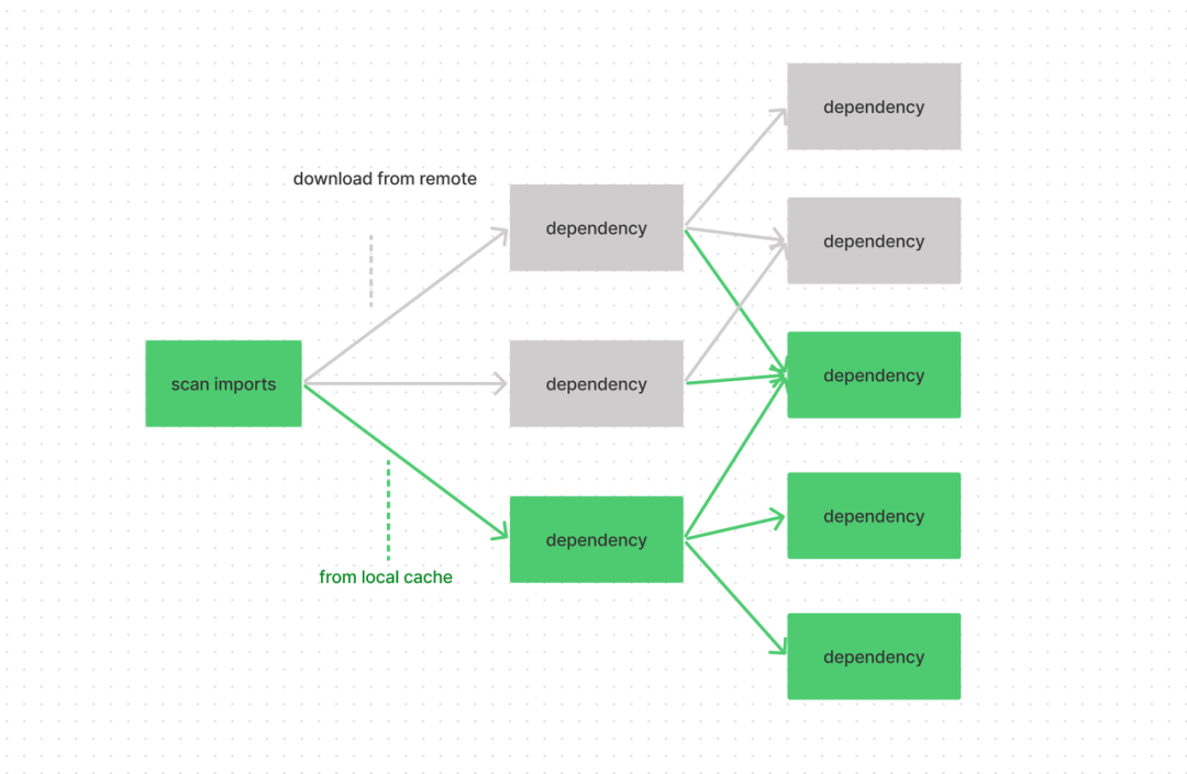 CJS 到 ESM 转换的产物可以在本地全局缓存,跨项目复用已经编译好的产物, 也就是说,随着使用项目增加,云端和本地双重缓存级联,能够大幅度减少 CJS 转 ESM 的时间。
