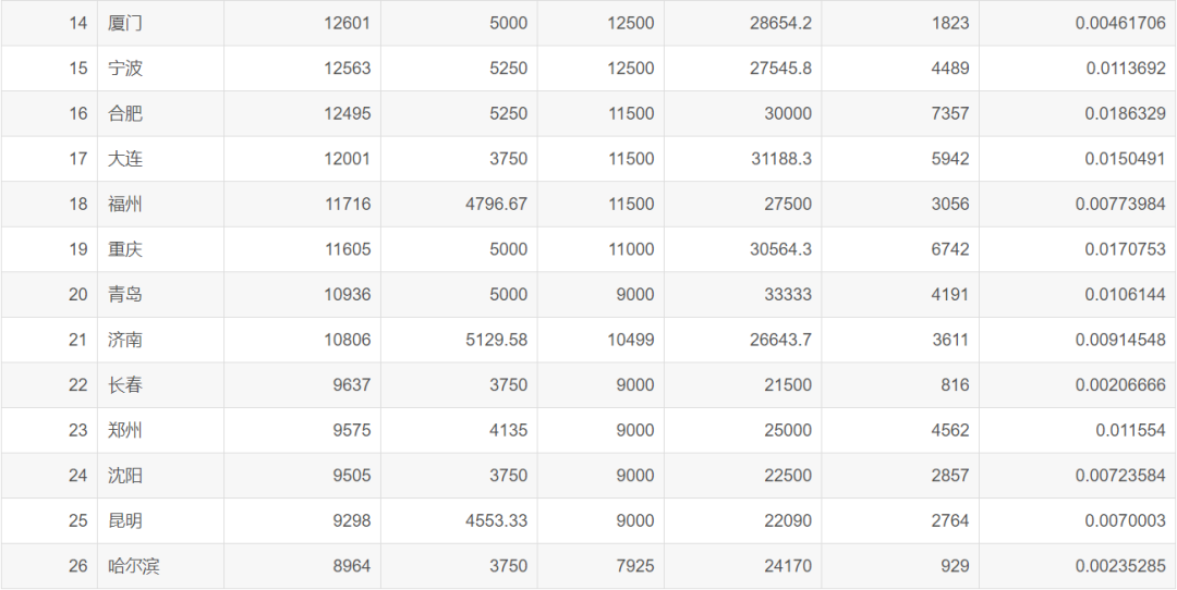 不同的城市之间薪资的差距其实是很大的,比如,我从北京跳回南京,就是降薪,从北京上海到南京,大概率都要降薪,无非就是降多少。不过肯定也有涨薪的小伙伴,这个就不杠了,O(∩_∩)O
