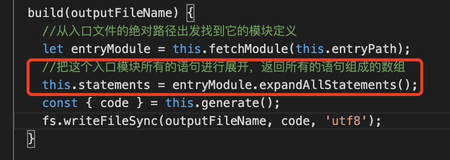 **expandStatement:**找到当前节点依赖的变量,找到这些变量的声明语句。这些语句可能是在当前模块声明的,也也可能是在导入的模块的声明的 然后放入结果里