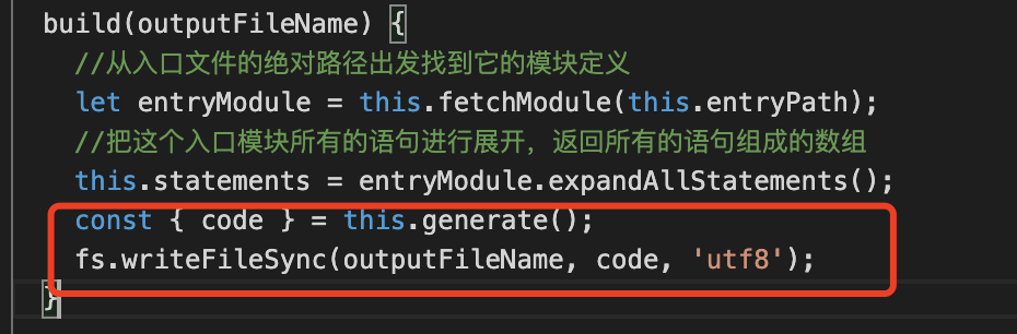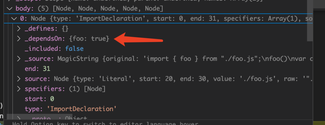 在抽象语法树的每一条语句上挂载_source(源代码)、_defines(当前模块定义的变量)、_dependsOn(外部依赖的变量)、_included(是否已经包含在输出语句中)
