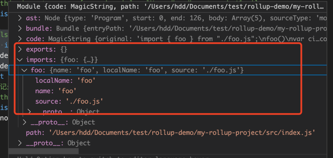你给它一个入口文件 —— 通常是 index.js。Rollup 将使用 Acorn 读取解析文件 —— 将返回给我们一种叫抽象语法树(AST)的东西。一旦有了 AST ,你就可以发现许多关于代码的东西,比如它包含哪些 import 声明。