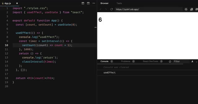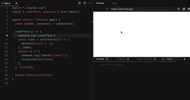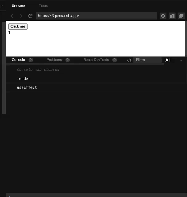 将 effect 中用到的外部变量 count 如实添加到依赖项数组中,结果如下: