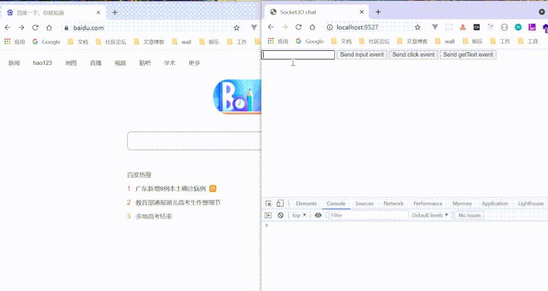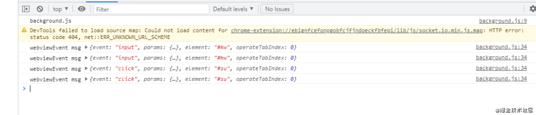 这时你可能会看到 2 条 log,其实这个是正常现象, 因为如果你是通过打开了 chrome-extension://xxx/background.html 直接打开后台页 运行一个后台线程 但是真正在后台常驻的还有一个线程 所以相当是 2 个后台接收到了 socket 消息所以就发送 2 次 msg