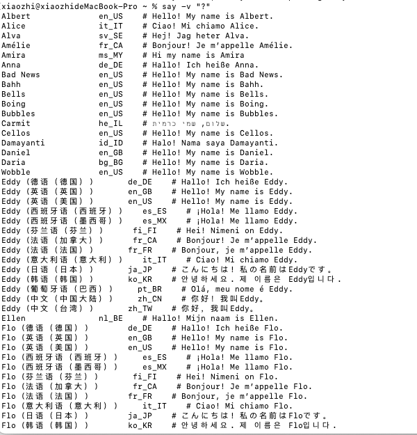 say -v "Yuki" "こんにちは、ビルドが完了しました" # Japanese