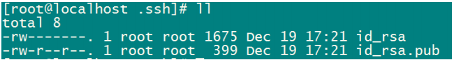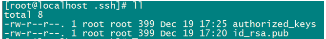 然后进入其目录(/root/.ssh/)下查看其公钥和密钥的权限