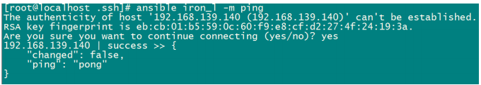 到此,测试通过。证明多台机器可以共用一对密钥作为Ansible控制端去访问被控机器。
