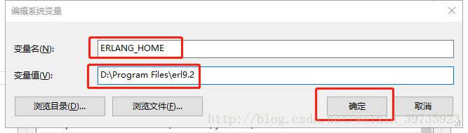 新建ERLANG_HOME=C:\Program Files\erl9.2 ,C:\Program Files\erl9.2 为你Erlang安装目录