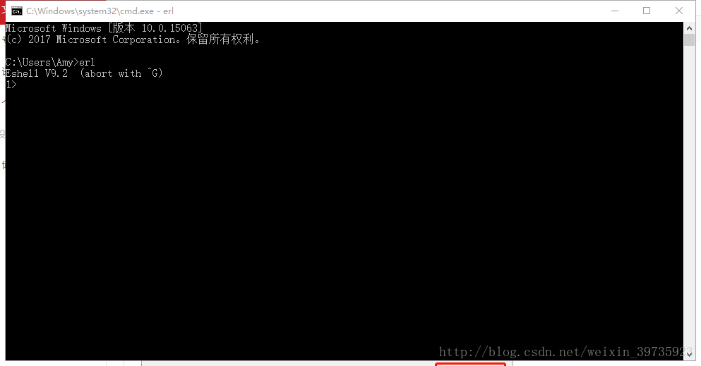 - 最后windows键+R键,输入cmd,再输入erl,看到版本号就说明erlang安装成功了。