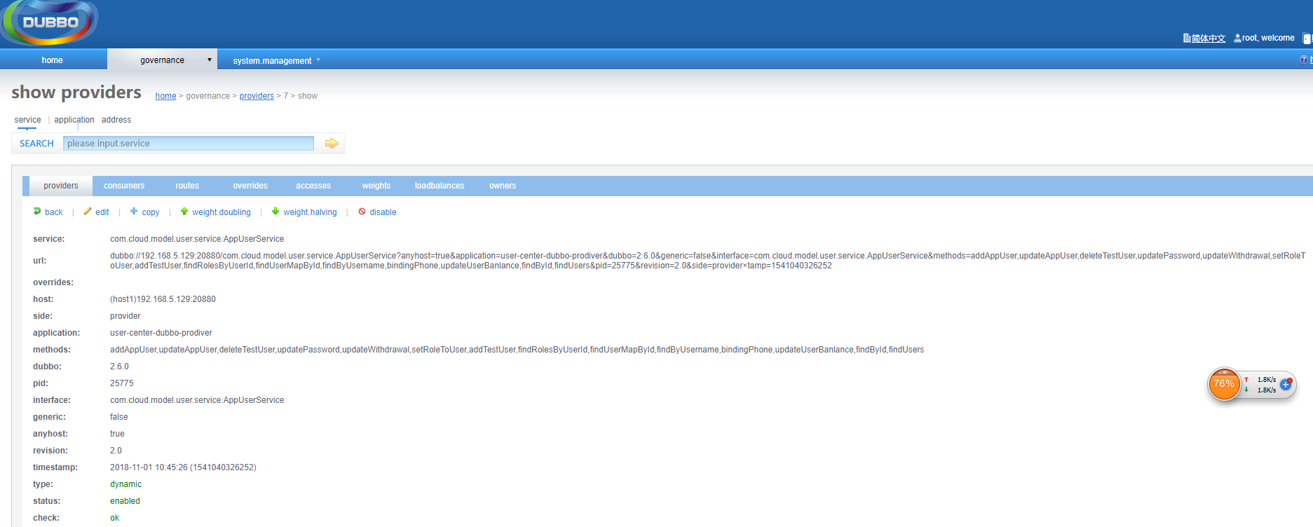 点进去可以看到提供者注册信息