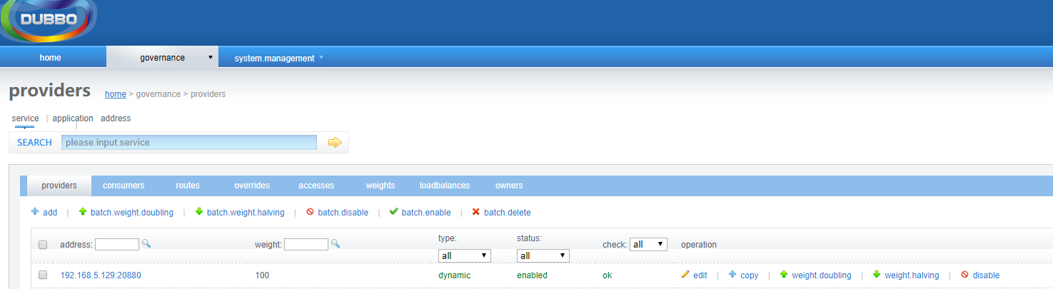 address: zookeeper://192.168.5.129:2181