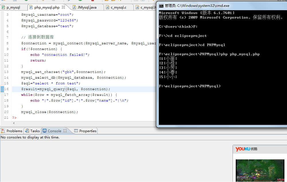 如果仔细观察会发现,PHP的API与C语言非常相似,这是因为PHP是使用DLL来扩展的mysql操作导致的。此外,PHP与前面三个不同的是,它不是编译型语言,是一种服务端的脚本语言,因此LZ选择使用命令来执行它。以下是LZ对它的评分。