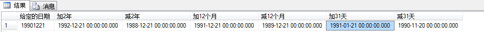 datediff(year,'1990-12-21','1988-12-21')--大的时间在前面面 间隔为负数