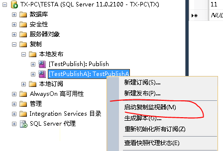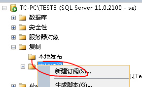 订阅数据库>>复制>>本地订阅>>右键>>新建订阅