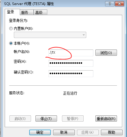代理安全设置 我已经配置了代理服务启动为当前计算机管理员 .\TX