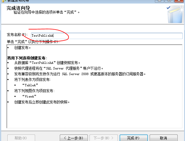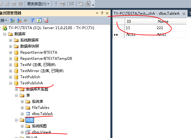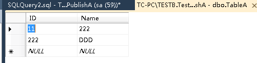8.发布服务器创建表TableA 并向其写入数据,创建视图ViewA