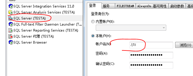 4.设置 SQL SERVER 服务登陆账号为当前管理员账号(发布服务器和订阅服务器都要设置)(解决 错误22022)