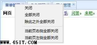 jQuery中的easyui插件包的tab标签组件,挺不错的,下面介绍如何为tab标签组件添加右键功能,效果图如下: