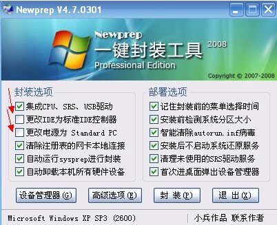 对于Windows XP,制作万能克隆时的一个重要问题就是系统激活,因为Windows XP为了防止盗版,采取了激活机制,当硬件发生改变时,系统就会要求重新激活,所以建议使用不需要激活的Windows XP版本,如大企业授权版本等。我用的是电脑城快速装机版XP SP3到处有的下载!