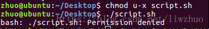 2.第二种方式在执行之前,我们先收回这个脚本的执行权限并做验证。