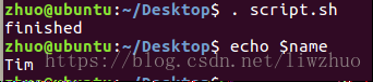 3.使用. script.sh 注意!.是一个命令,后面要有空格(source命令也称为“点命令”,也就是一个点符号(.),是bash的内部命令。)