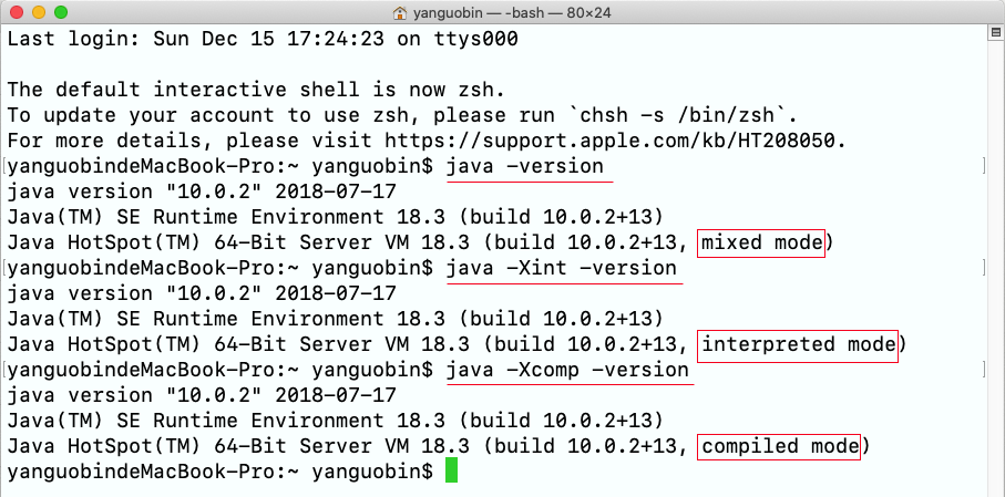 -Xmixed:混合模式,JVM自己来决定是否编译成本地代码,默认使用的就是混合模式