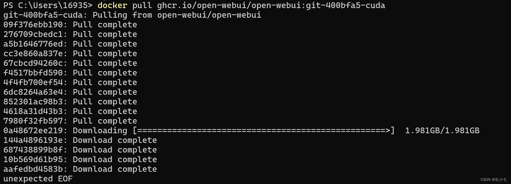 4.到Github复制命令,ollama安装在本地,在命令提示符执行;