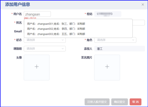 2.【平台A】提供人员接口,【平台B】新增用户可以调取接口,进行模糊搜索提示;
