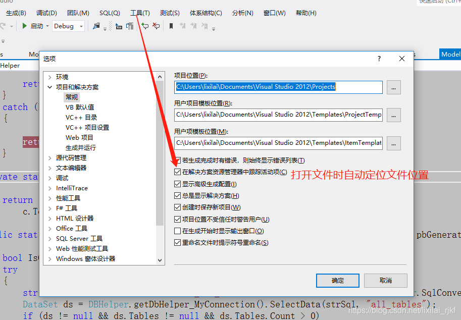 VS自动定位文件