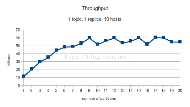 初步结论:partition越多,吞吐量越大(但是根据网上结论,这个是有一定峰值,当达到峰值的时候,数量趋于平缓)如下图: