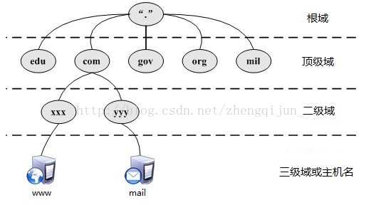 - 根域:DNS域名使用中规定由尾部句点'.'来指定名称位于根或者更高层次的域层次结构。