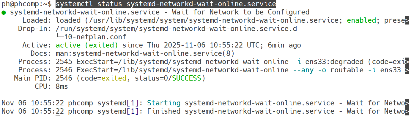 重启服务 sudo systemctl restart systemd-networkd-wait-online.service