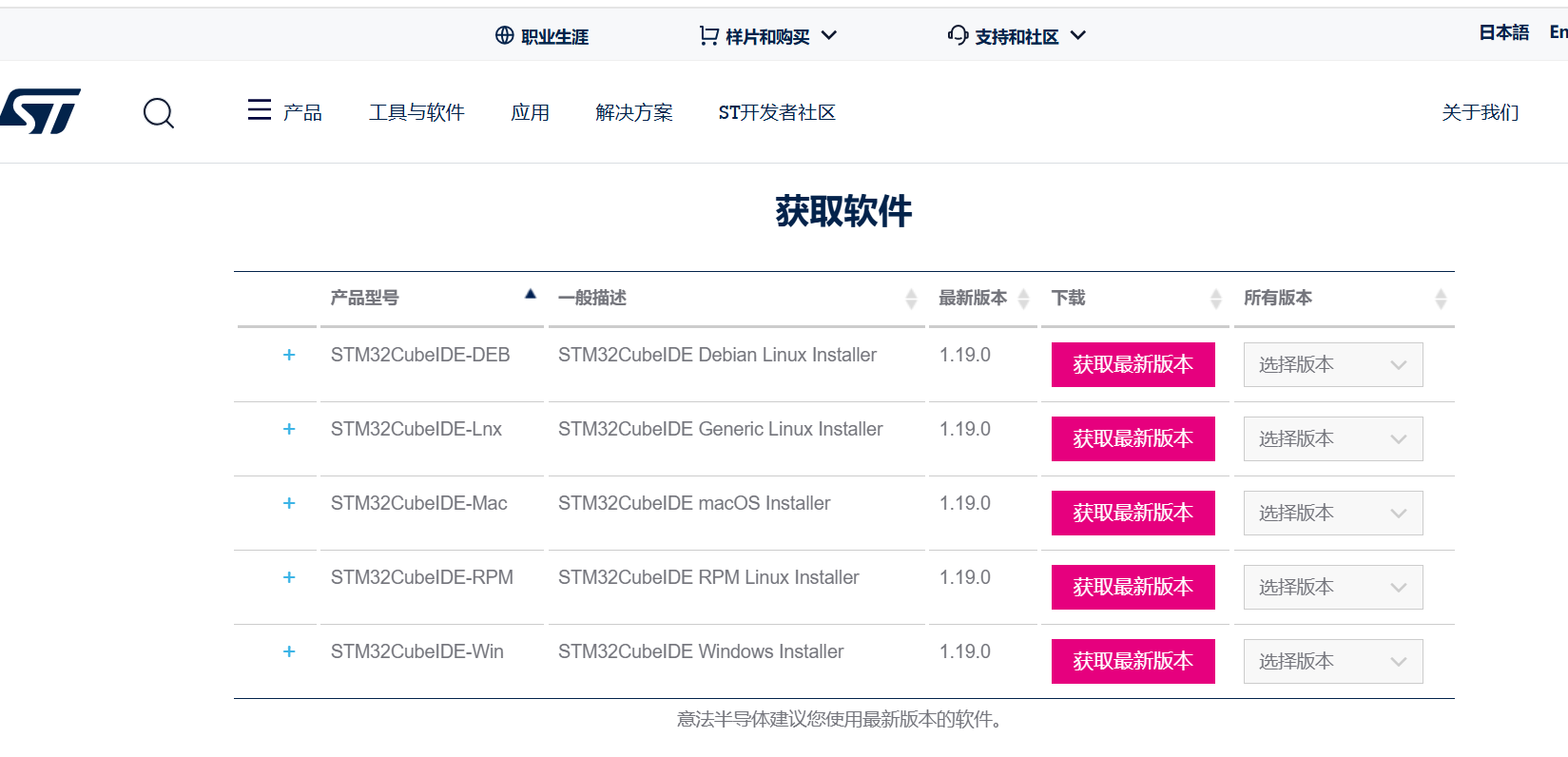 链接:https://www.st.com.cn/zh/development-tools/stm32cubeide.html